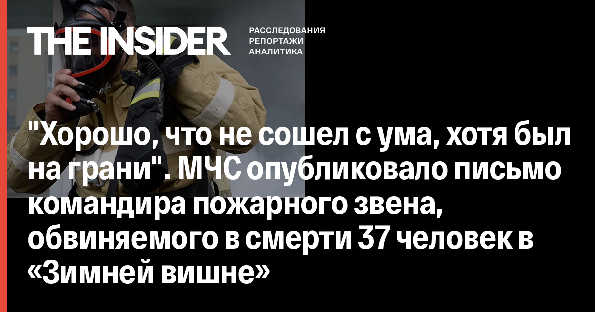 "Хорошо, что не сошел с ума, хотя был на грани". МЧС опубликовало письмо командира пожарного звена, обвиняемого в смерти 37 человек в «Зимней вишне»