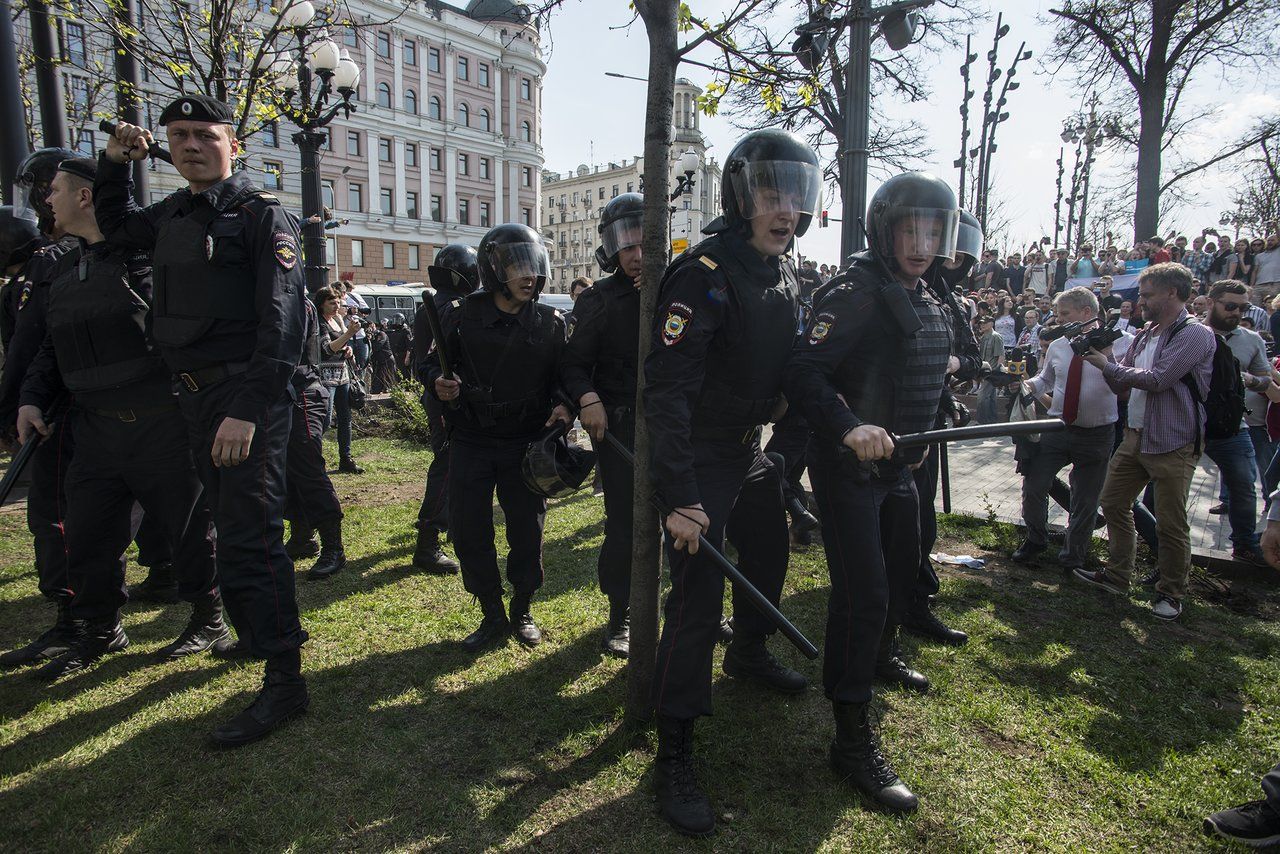 On May 5, thousands of Russians across the country protested against Vladimir Putin’s upcoming inauguration. In Moscow, where demonstrators did not get a permit from city officials, the police detained more than 700 people (almost half of the 1,600 protesters detained nationwide on Saturday), including the campaign’s organizer, anti-corruption activist Alexey Navalny. Arriving at Pushkin Square, demonstrators encountered members of the pro-Kremlin “National Liberation Movement” and men dressed as Cossacks, who antagonized and attacked them. Meduza correspondent Irina Kravtsova attended the protest and witnessed the day’s events.