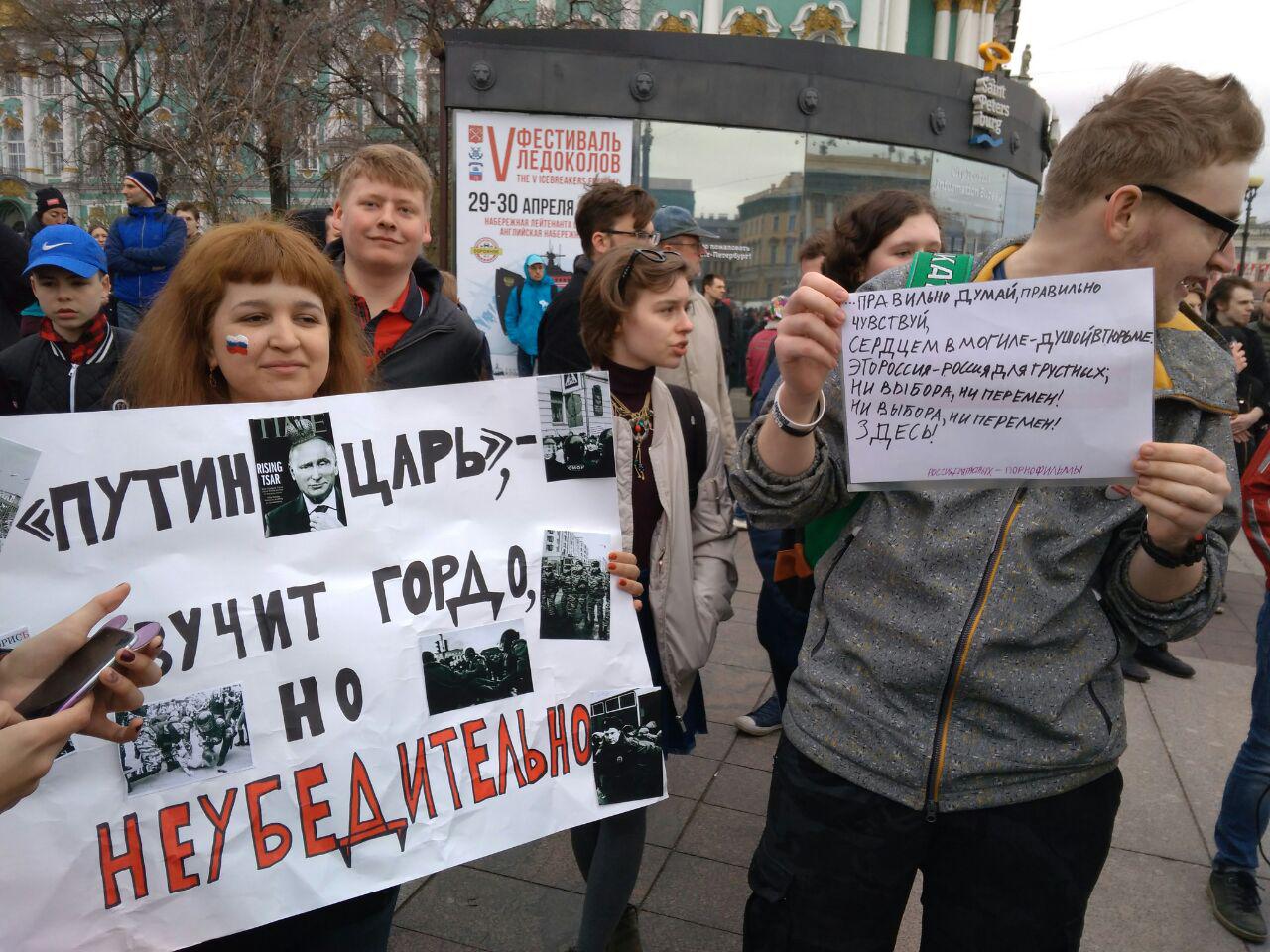 Несогласованная акция «Он нам не царь» проходит в Петербурге. Однако Дворцовая площадь, где должны были собраться протестующие, оказалась перекрыта.
