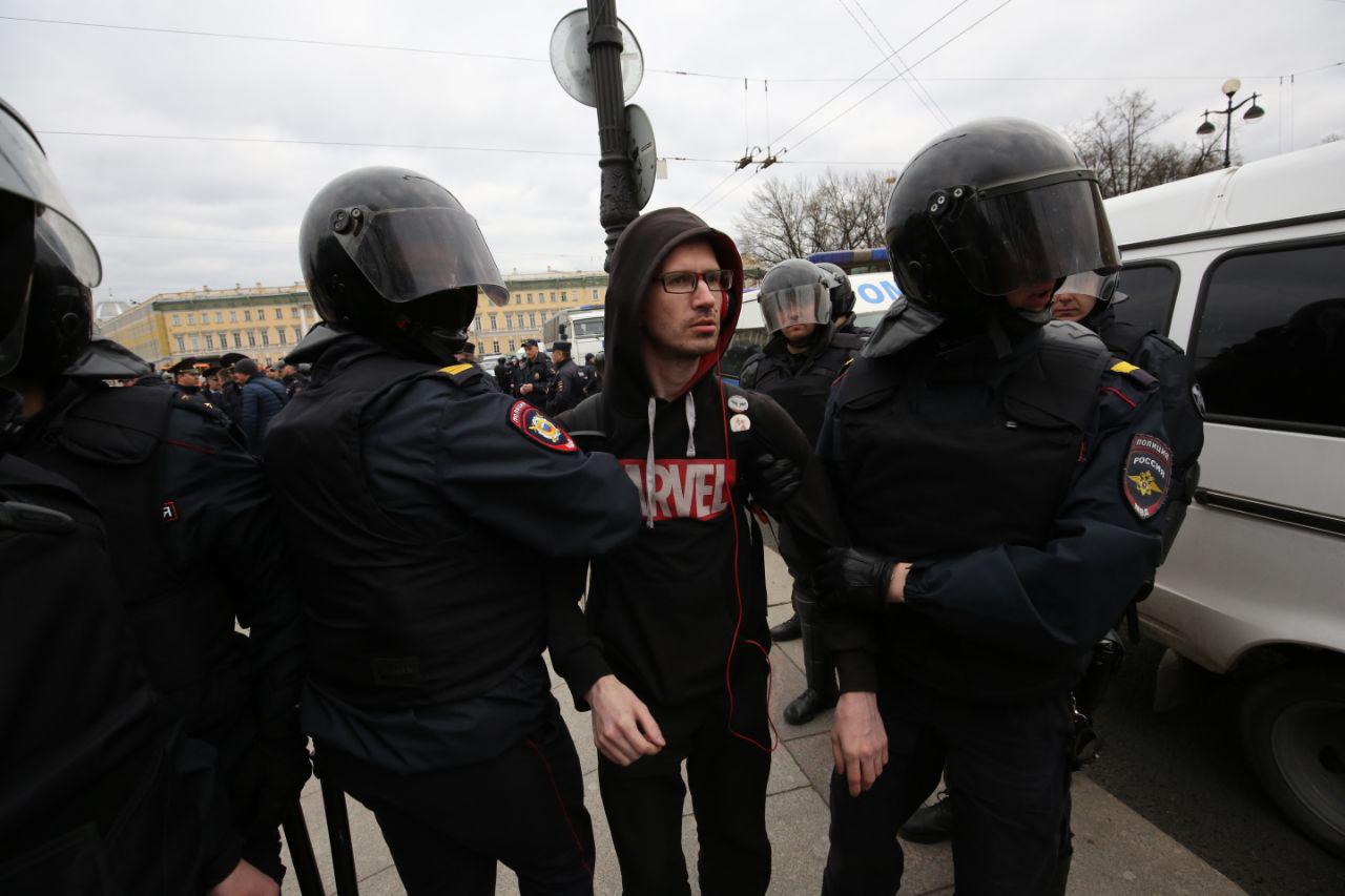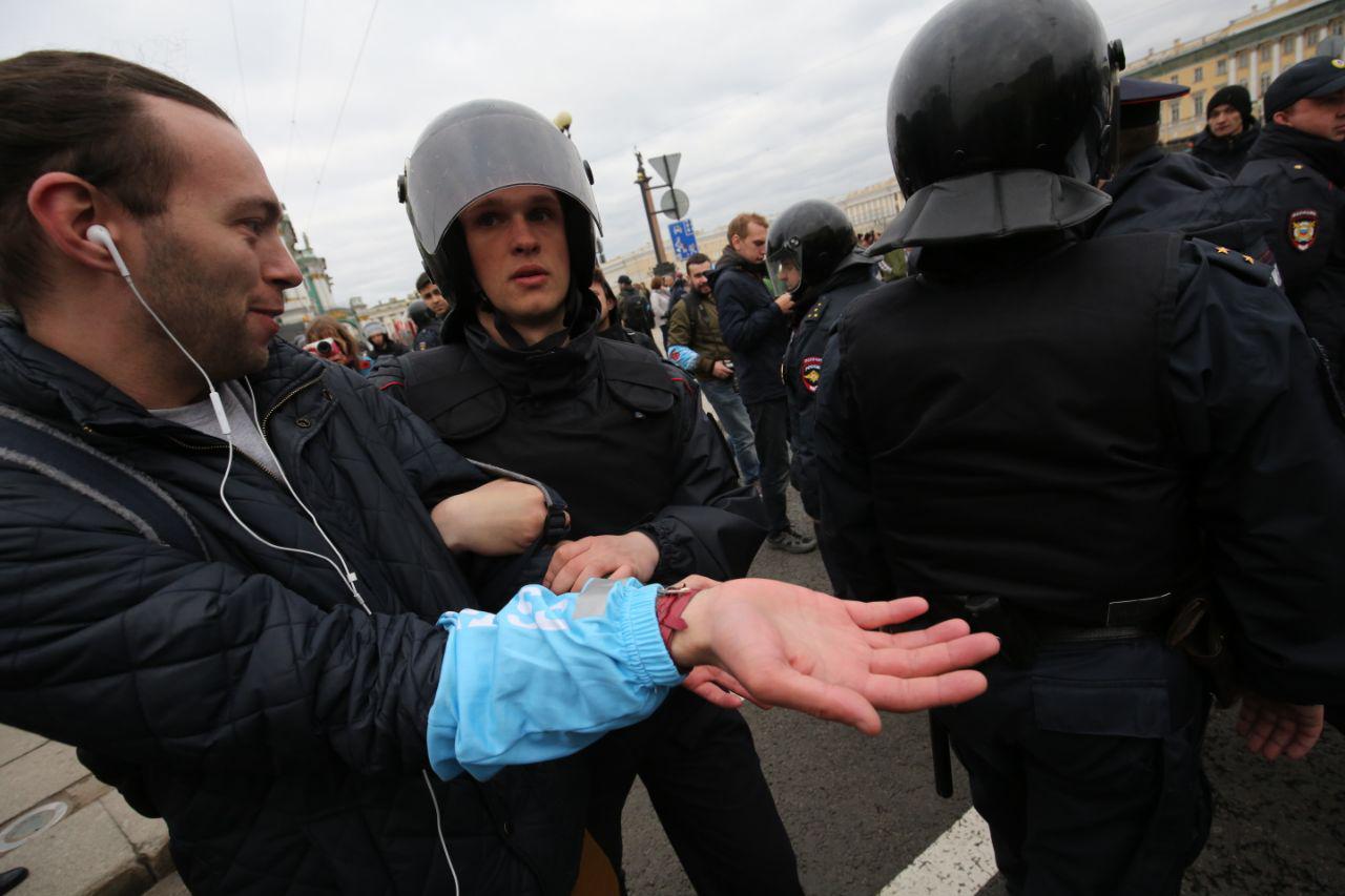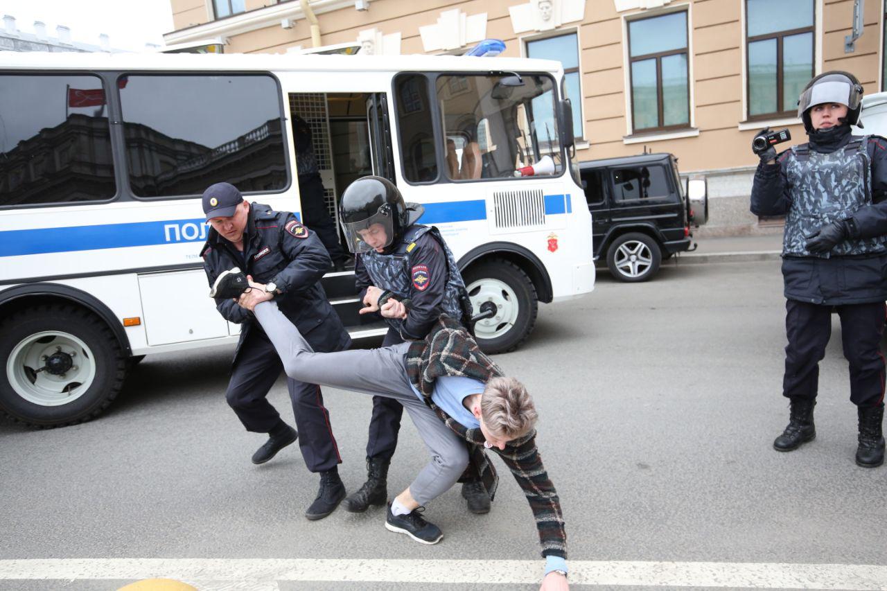 Как около 2 тысяч человек митинговали у Адмиралтейства, шли по Невскому проспекту и улице Марата и как их с дубинками задерживал ОМОН — «Бумага» публикует фоторепортаж Давида Френкеля.
