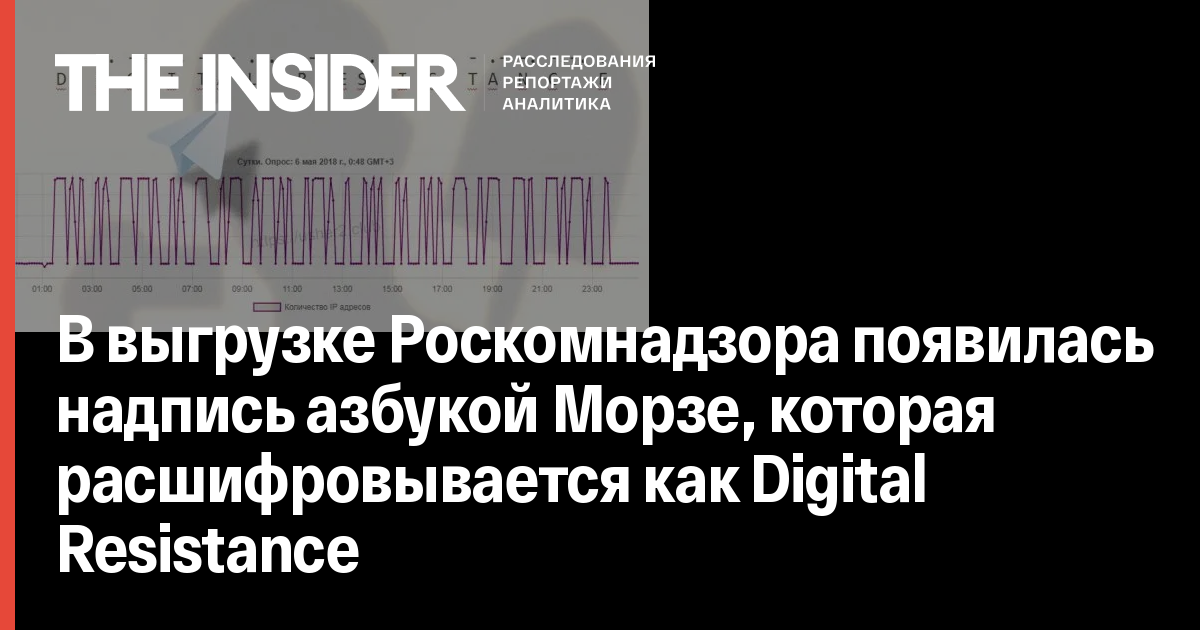 Неизвестный размещал и удалял тысячи IP-адресов в выгрузке Роскомнадзора. В результате на графике отслеживания блокировок появилась надпись Digital Resistance азбукой Морзе. Это обнаружил Roem.ru.