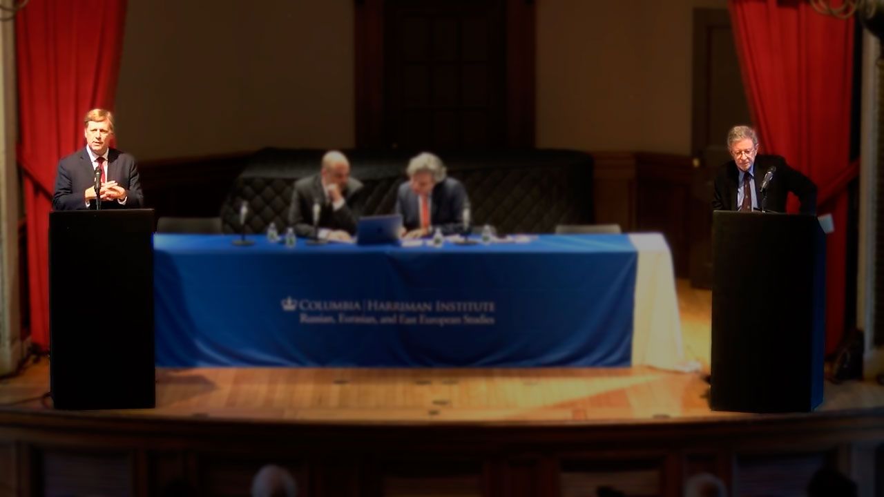 In a story for The New York Times Magazine published on May 8, 2018, Keith Gessen profiled the “Russia hands” who currently run the show in Washington. One of the article’s many payoff paragraphs comes when Gessen explains that these experts “divide less along party lines than along foreign-policy philosophies” and the prevailing group is a “vast internationalist middle” that excludes only “tiny slices” of “hard realists” on the right and “soft realists” on the left. For the “small contingent of dissidents” who haven’t become hawks, it’s now about “keeping a low profile.” Living in New York City, retired from academia, and unencumbered by the Washington consensus on Russia, Professor Stephen Cohen does not keep a low profile. In recent years, he has been one of America’s most vocal “dissidents” when it comes to the nation’s Russia policies. On Wednesday, May 9, Cohen visited the Harriman Institute at Columbia University to debate Stanford Professor and former Ambassador Michael McFaul, who is currently promoting his new book “From Cold War to Hot Peace.” Gessen describes McFaul as “a Russophile” opposed to unilateralism who’s also “an avid internationalist and democracy promoter.” For almost two hours, Cohen and McFaul exchanged their very different views on America’s Russia policy.