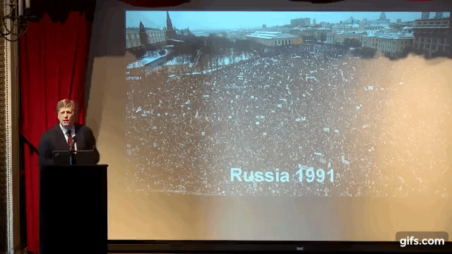 Two years later, however, we got the popular uprisings in Egypt, Libya, Syria, and then Russia. “These are the events that led to the current confrontation.” Putin thought it was the CIA pulling all the strings. “I just want to state, for the record, on the facts: we were not giving money to the opposition. I was not handing out money to Navalny. That is not true.”