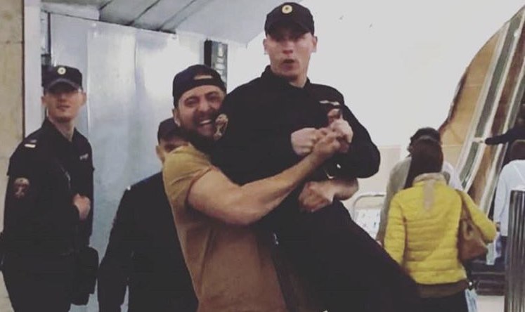 Ранее в социальных сетях появилось вирусное видео, на котором бородатый молодой человек, улыбаясь на камеру, подходит к трем сотрудникам Нацгвардии, осторожно поднимает над собой самого низкого из них и проносит несколько метров. Видео заканчивается на моменте, когда молодой человек ставит нацгвардейца на землю и оказывается в окружении его коллег. Инцидент произошел 6 мая.