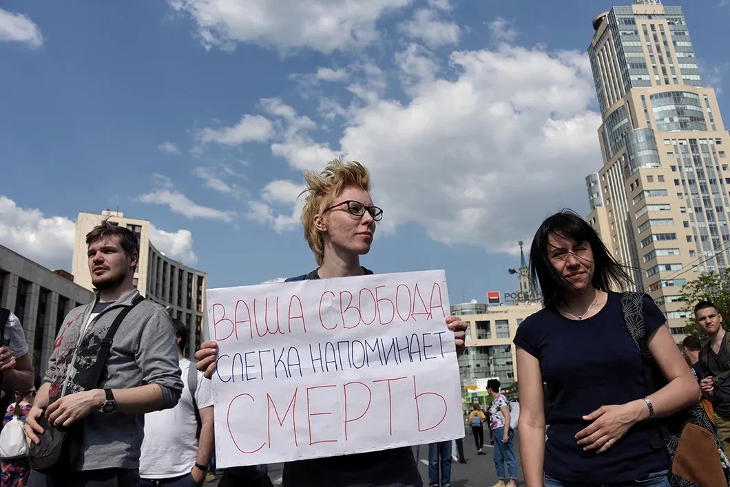 13 мая на проспекте Сахарова в Москве прошла согласованная акция «За свободный интернет» в поддержку мессенджера Telegram, который Роскомнадзор пытается заблокировать с апреля (пока безуспешно).