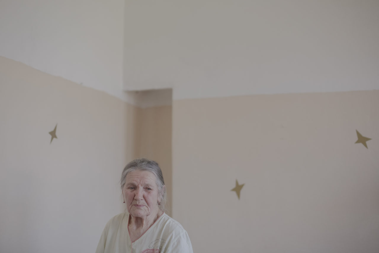 «Посмотрите, как тут жить? Я так люблю чистоту, а вот этот пол даже отмыть не смогла, — Полина Андреевна слабо топает по полу и снова заливается слезами. — Одного моего сына убили. Остался один. Они меня звали, но там семья большая, куда я там? Мне часто писать надо бегать, у них кошка — у меня аллергия. А тут у меня муж на кладбище, рядом…»