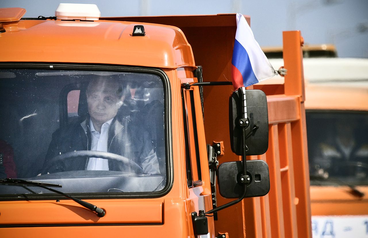 15 мая. Путин открыл Крымский мост, проехав по нему на КамАЗе