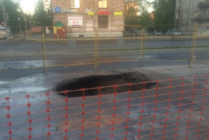 Рядом с метро «Елизаровская» на улице Бабушкина провалился асфальт, сообщают очевидцы в социальных сетях.