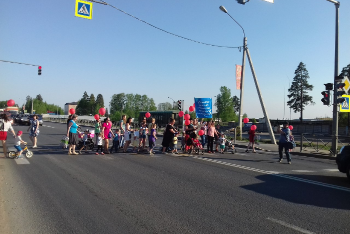 По словам очевидцев, это акция протеста, которую жители Сертолова проводят из-за нехватки детских садов и школ. При этом город интенсивно застраивают, утверждают местные жители.
