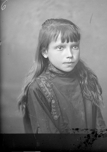 Девочка, начало 1920-х годов. Волосы причесаны, на праздничном платье с вышивкой, которое, вероятно, сшила мама, складки разглажены. Скорее всего, пришла фотографироваться с родителями и волновалась.