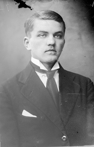 Молодой человек, первая половина 1920-х годов. Одет в вязаный галстук, новые туфли. Скорее всего, бывший рабочий, прошедший войну и получивший большую награду. Возможно, работает автомехаником.