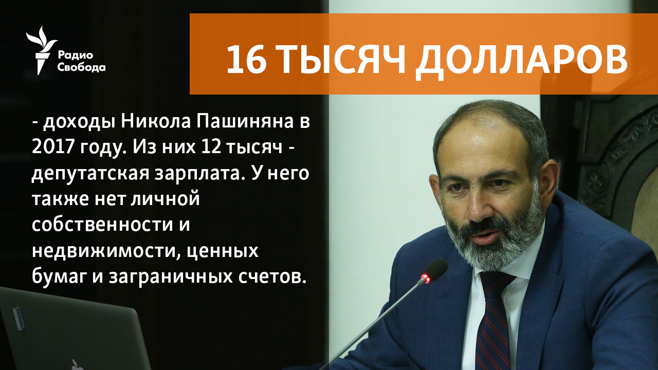 Отмечается, что в прошлом году доходы Пашиняна составили около 16 тысяч долларов, из которых около 12 тысяч – депутатская зарплата. По данным издания, у премьера Армении и его жены нет ценных бумаг, зарубежных активов или банковских счетов, а также недвижимости.
