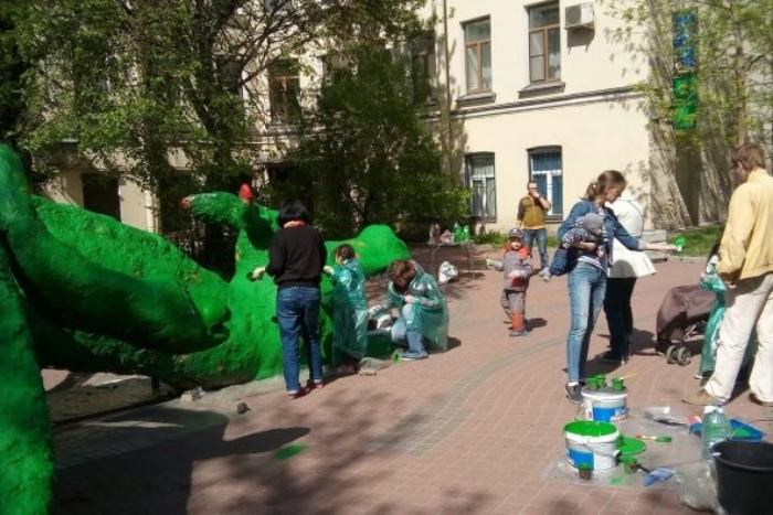 В этом году петербуржцы будут красить горку «Репка» на улице Кораблестроителей, скульптуру «Дракон» на 8-й линии Васильевского острова и скульптуры крокодила и бегемота на набережной канала Грибоедова.