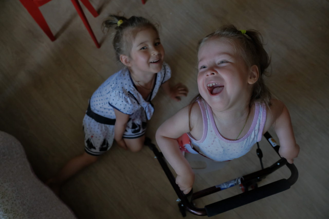 Раньше Соня только ползала, волоча ноги за собой, а в фонде ей подобрали небольшую колясочку, с помощью которой она перемещается самостоятельно. И теперь она на равных играет с сестрой — едет туда, куда бежит Мира, даже обгоняет ее. Соня очень хочет ходить, и, хотя ноги у нее парализованы, существует специальный аппарат на ноги с поддержкой спины, который может ей в этом помочь. В конце мая Соня с мамой поедут его примерять. Этот аппарат тоже оплатил фонд.
