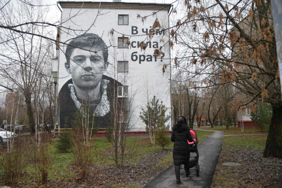 Граффити с портретом актера Сергея Бодрова в образе Данилы Багрова из фильма «Брат» на фасаде жилого домаФото: Комсомольская правда/PhotoXPress.ru Сейчас Сегодня, спустя двадцать лет, все сложнее не замечать тот самый моральный комментарий, в отсутствии которого Балабанова обвиняли первые критики. Этический стержень в «Брате» есть — это Немец, маргинал, живущий на Смоленском кладбище Петербурга и отвергающий нечистые деньги; выбор, на который и в 1990-е, и тем более сегодня отважились бы немногие. Все еще заслоненный от внимания зрителя своим молодым приятелем, Немец является другим — тем, кто выбрал непопулярный путь, отказавшись от стяжательства и отвергнув искушения смутного времени. Дальнейшая фильмография Балабанова (как и неизвестный массовому зрителю 1990-х его дебют «Счастливые дни», снятый на том же Смоленском кладбище) подтверждает, что сам он в «Брате» соотносит себя именно с Немцем: линию бесправного, забитого, нищего, но способного на тихое моральное сопротивление героя продолжат вьетнамец Сунька в «Грузе 200» и «афганец»-якут в «Кочегаре», не случайно одетый в фирменную тельняшку своего создателя.
