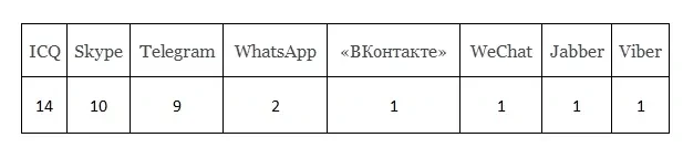 В итоге осталось 34 дела, в которых оперативники читали мессенджеры (см. таблицу, в которой указано, сколько раз фигурирует в судебных актах каждый из прочтенных мессенджеров).