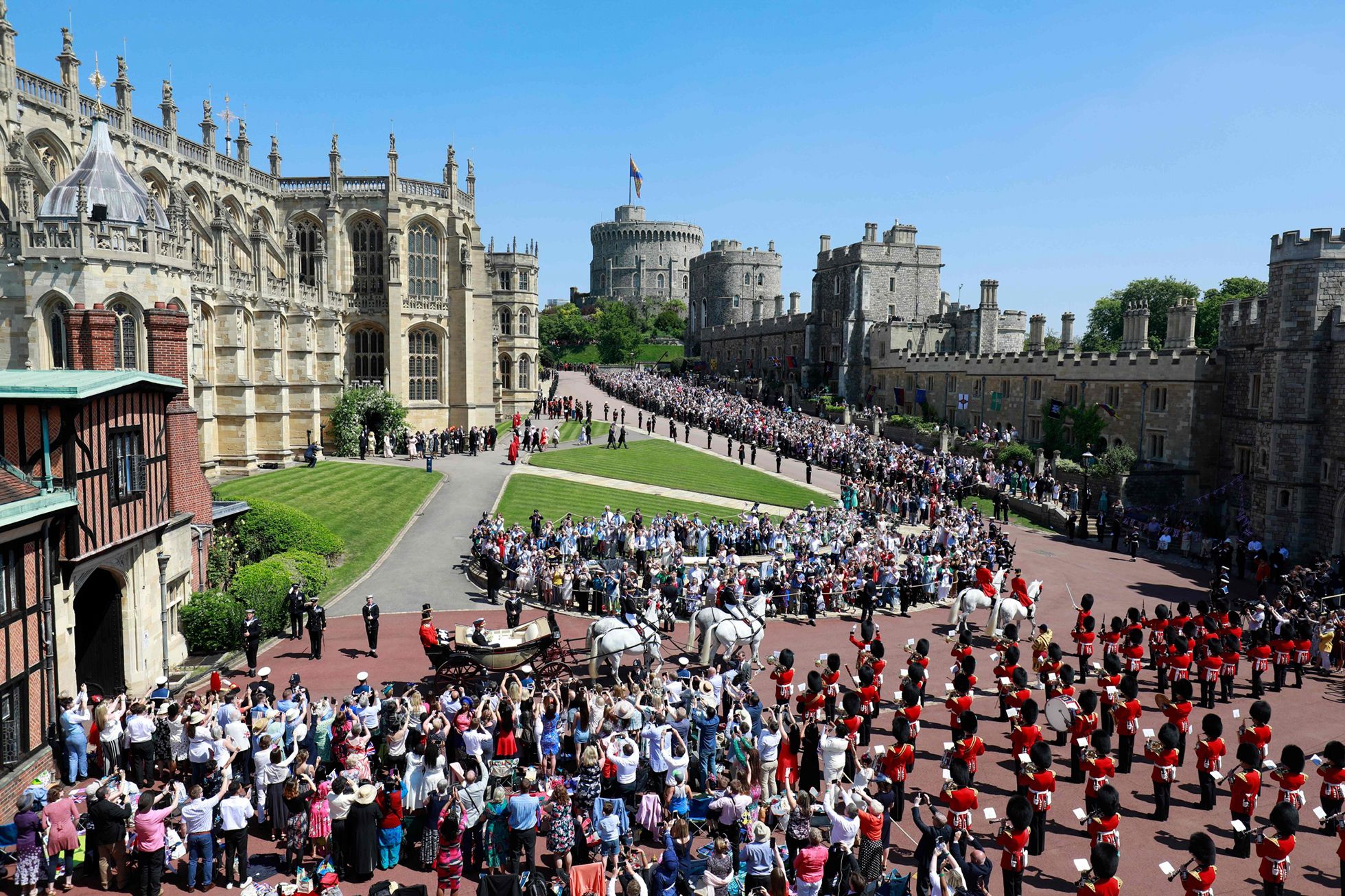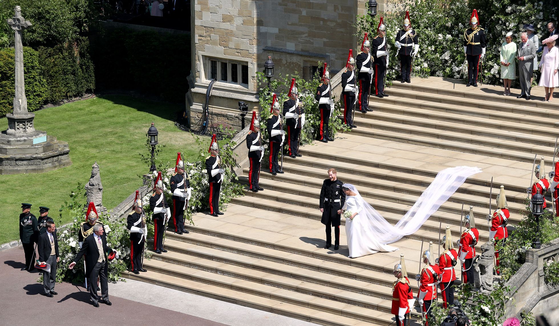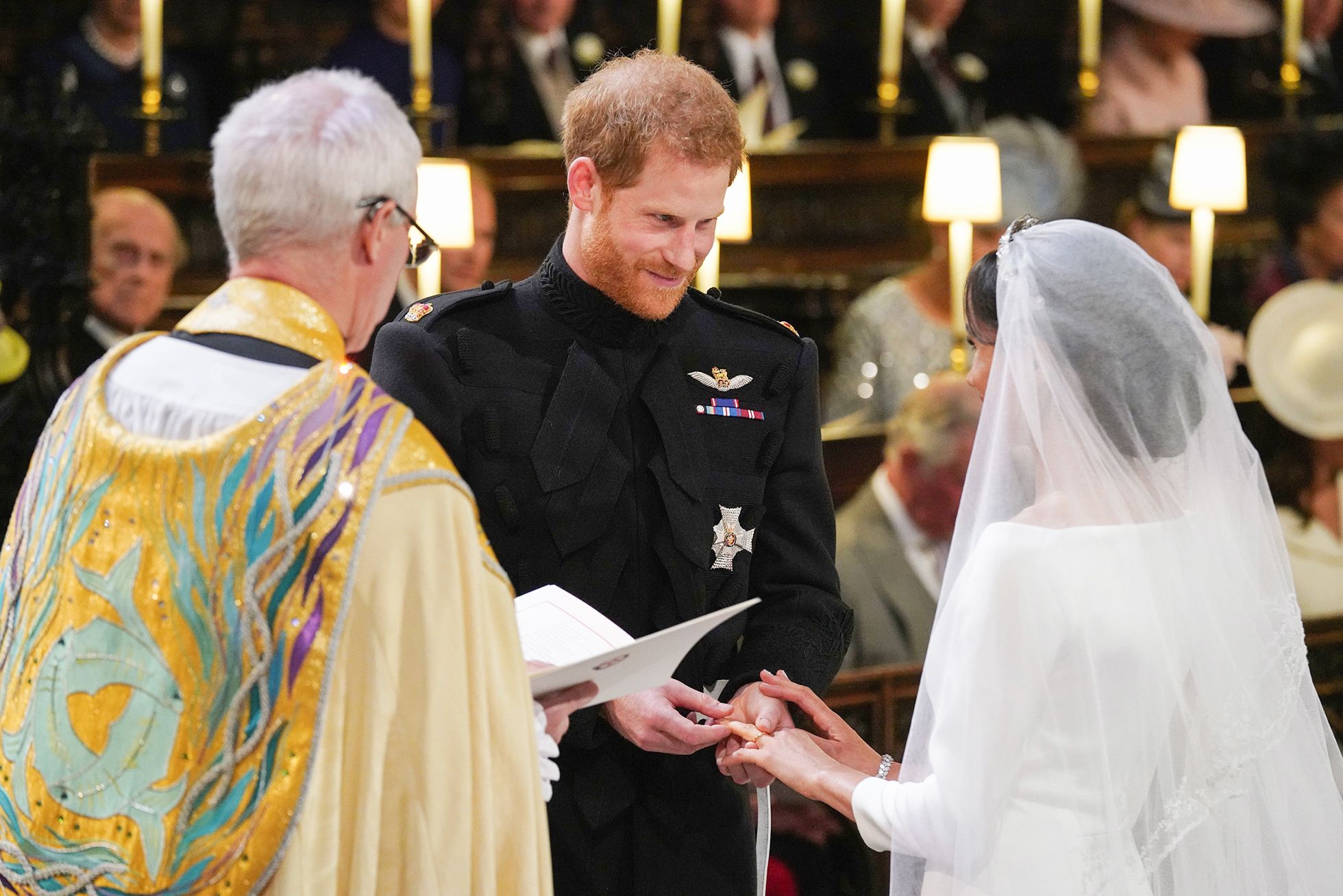 Camera Press / Vida Press Королева Елизавета II и ее муж принц Филипп прибывают в Виндзорский замок, где состоялась церемония бракосочетания принца Гарри и Меган МарклJackson Lee / GC Images / Getty Images Меган Маркл приехала на церемонию вместе с матерью. Отец невесты не смог посетить свадьбу из-за проблем со здоровьемDanny Lawson / AP / Scanxpi / LETA Гости церемонии: футболист Дэвид Бекхем, его жена Виктория, музыкант сэр Элтон Джон и его муж режиссер Дэвид ФернишToby Melville / AFP / Scanpix / LETA Теннисистка Серена Уильямс с мужем Алексисом Оганяном, одним из основателей сайта RedditGareth Fuller / AP / Scanpix / LETA Актер и режиссер Джордж Клуни с женой, правозащитницей Амаль КлуниAndrew Matthews / WPA Pool / Getty Images Меган Маркл в свадебном платье от Givenchy на ступенях часовни Святого Георгия, где состоялась церемония венчанияCamera Press / Vida Press Принц Гарри и его шафер (и брат) принц Уильям в часовне святого ГеоргияCamera Press / Vida Press Сын королевы Елизаветы, принц Уэльса Чарльз ведет Меган Маркл к алтарюCamera Press / Vida Press Меган Маркл в часовне святого Георгия. В среднем ряду слева направо: королева Елизавета II, герцог Эдинбургский, граф Уэссекский, виконт Севернский, графиня Уэссекская и другие. В нижнем ряду слева направо: принц Уильям (брат жениха), принц Уэльский Чарльз, его жена герцогиня Корнуольская Камилла Паркер-Боулз, жена принца Уильяма герцогиня Кембриджская Кэтрин Миддлтон, герцог ЙоркскийFrank Augstein / AFP / Scanpix / LETA Постер с изображением матери принца Гарри, принцессы Дианы, погибшей в 1997 году. Поклонники королевской семьи собрались на холме рядом с Виндзорским замкомOwen Humphreys / WPA Pool / Getty Images Принц Гарри и Меган Маркл произносят брачные клятвы у алтаряDominic Lipinski / WPA Pool / Getty Images Венчал новобрачных архиепископ Кентерберийский Джастин УэлбиCamera Press / Vida Press Принц Гарри надевает кольцо на руку невестыBen Birchall / WPA Pool / Getty Images Принц и его жена целуются на ступенях часовни святого ГеоргияPA Wire / PA Images / Scanpix / LETA Новобрачные покидают часовнюAndrew Matthews / Reuters / Scanpix / LETA Слева направо: мать невесты Дория Рэгленд, отец жениха принц Уэльский Чарльз, его жена Камилла Паркер-Боулз, брат жениха принц Уильям с женой Кэтрин и детьмиOdd Andersen / AFP / Scanpix / LETA Упряжка с новобрачными покидает Виндзорский замок во главе свадебной процессии (эта и следующие фотографии)Daniуд Leal-Olivas / AFP / Scanpix / LETAYui Mok / AFP / Scanpix / LETASamir Hussein / WireImage / Getty Images