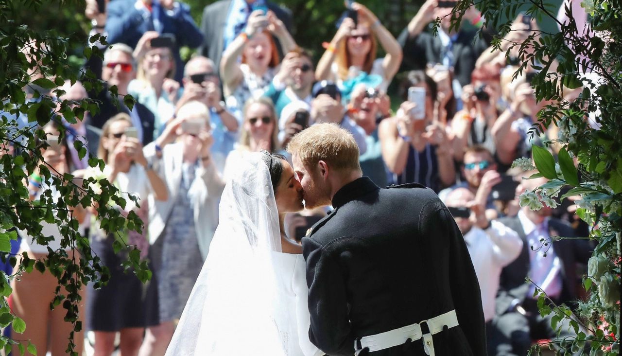 Danny Lawson / AFP / Scanpix / LETA Принц Гарри и Меган Маркл (теперь — герцогиня Сассекса) целуются, покидая Виндзорский замок после свадебной церемонии, 19 мая 2018 года