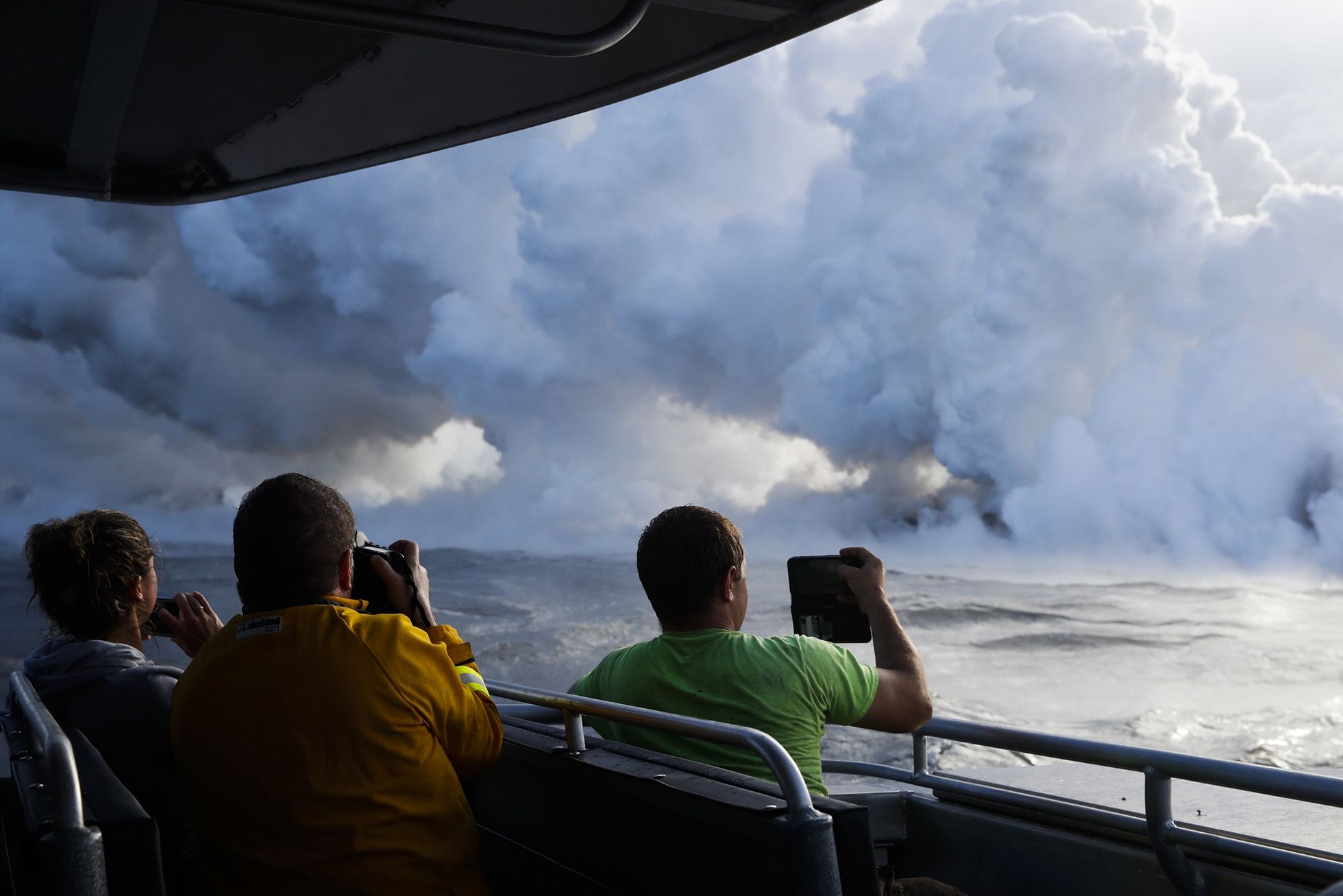 Лава от вулкана Килауэа на Гавайях достигла океана. Фотография