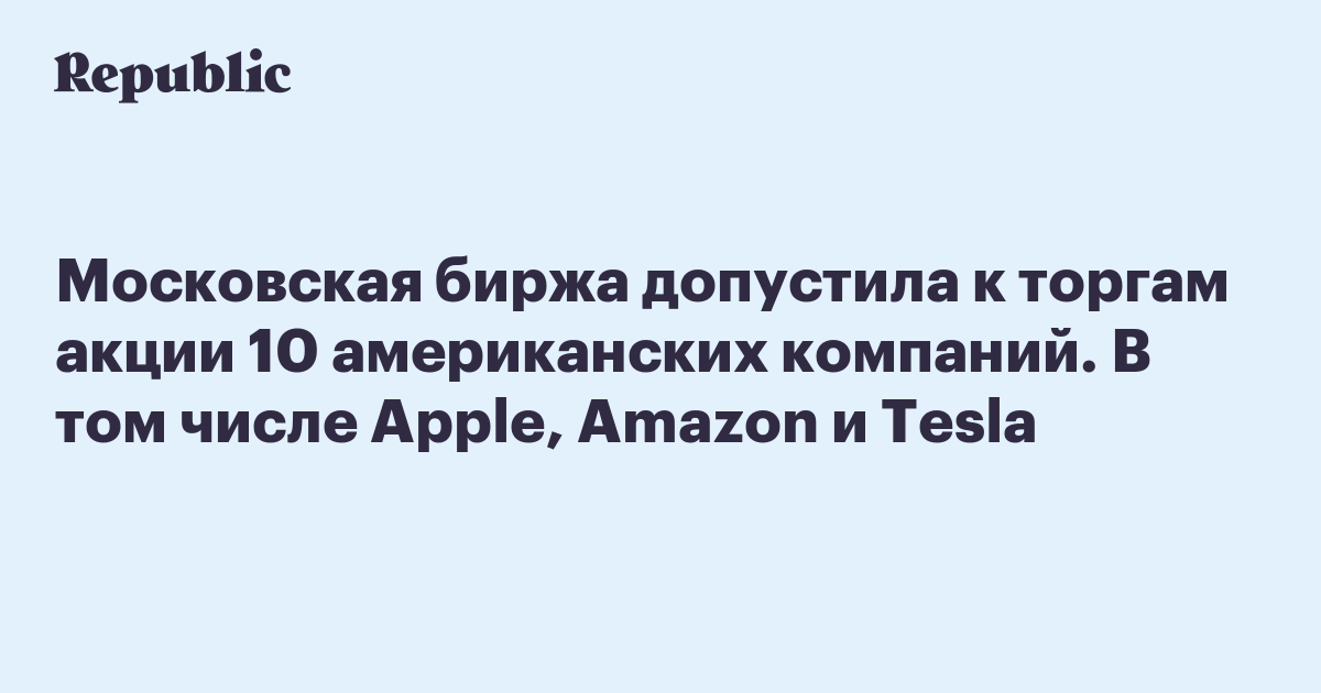 Московская биржа допустила к торгам акции 10 американских компаний. В том числе Apple, Amazon и Tesla