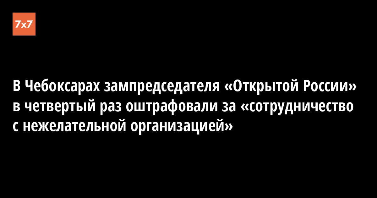 Заместителя председателя сетевого движения «Открытая Россия» Дмитрия Семёнова 21 мая в четвертый раз оштрафовали за сотрудничество с нежелательной организацией Otkrytaya Rossia. Об этом «7x7» рассказал его юрист Алексей Глухов. Суд в Чебоксарах прошел без его участия, активист покинул Россию.