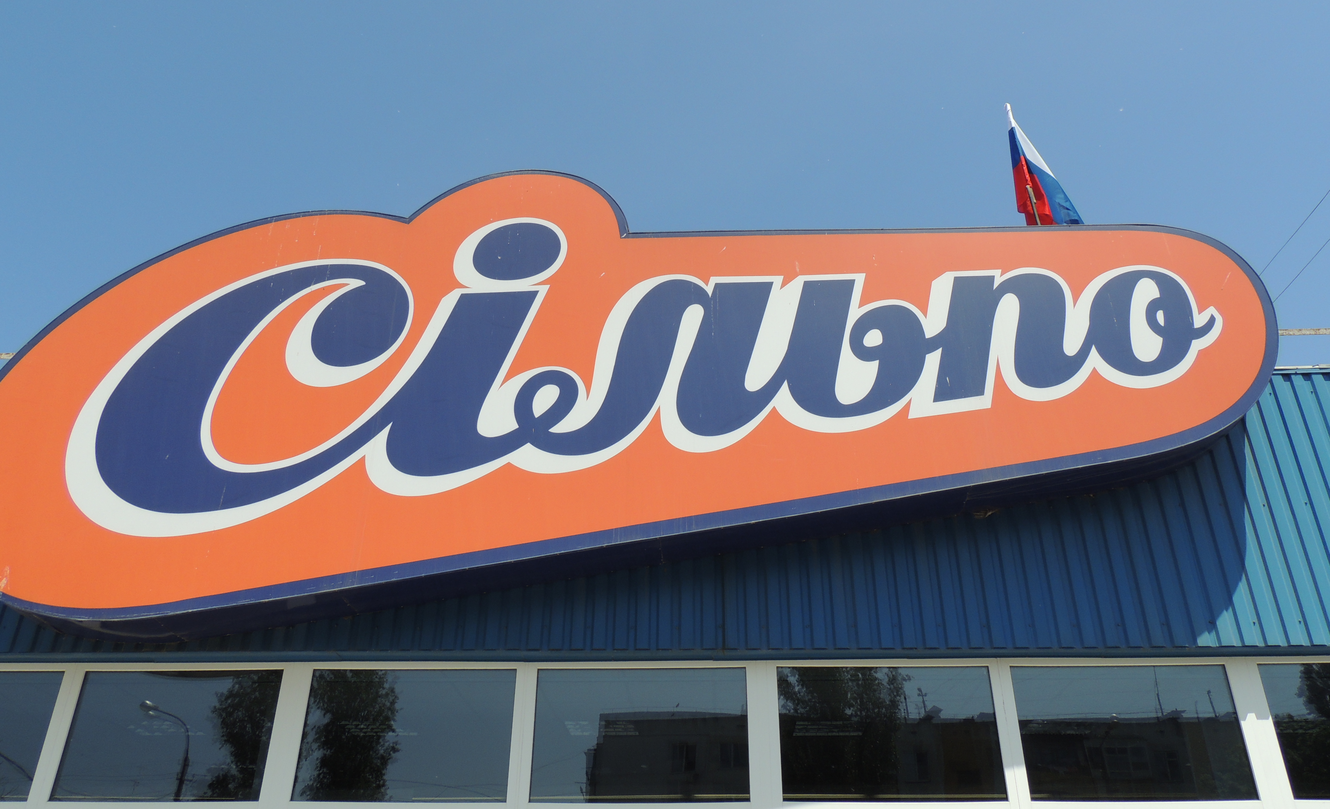 На продуктовом рынке в Керчи еще остались украинские названия, но над ними висит российский флаг