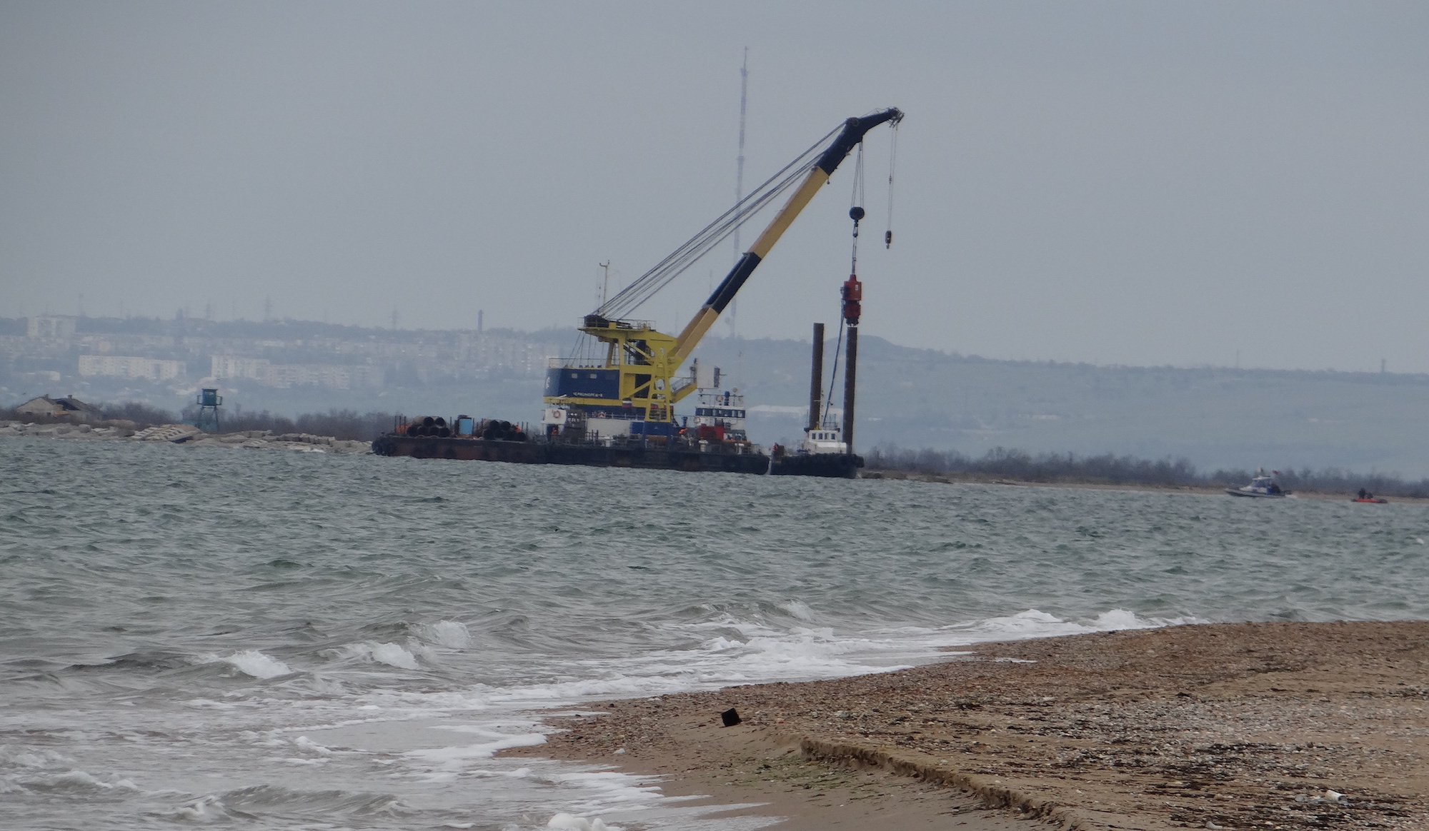 Начало строительных работ на косе Тузла в 2015 году
