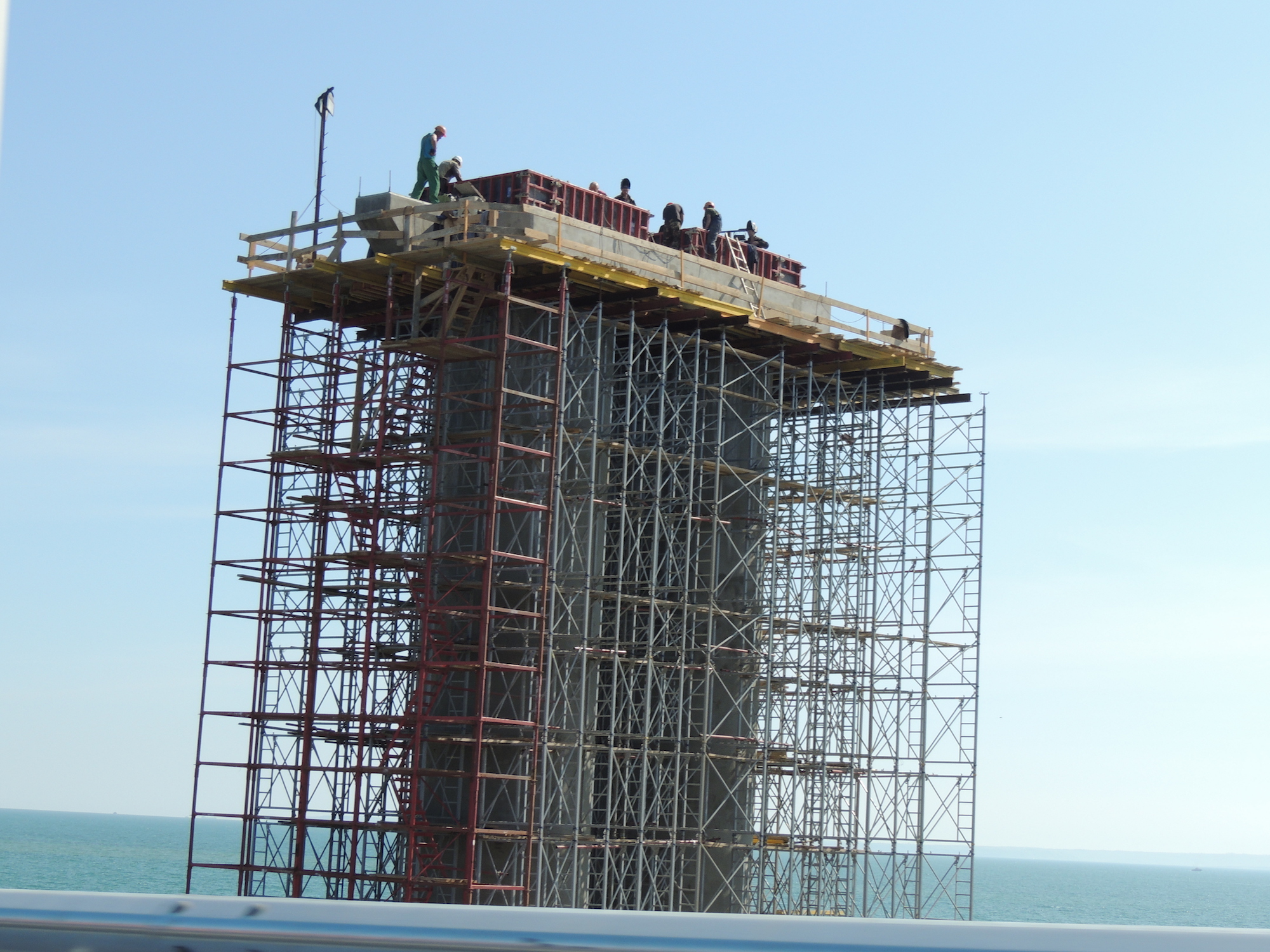 Некоторые украинские СМИ сообщили, что одна из опор моста дала трещину — и эта опора действительно долго была закрыта строительными лесами. Один из строителей моста рассказал корреспонденту The Insider: «Керченский пролив — это живой организм, в нем все движется и пульсирует. Не секрет, что под мостом сложная геология. Опоры нашпиговали контрольными датчиками. Были выявлены опоры, которые принимают наибольшие «донные» нагрузки, на них устроили целую исследовательскую лабораторию. После кропотливых изысканий ученые и инженеры приняли решение одну опору усилить, максимально подняв перемычку. Во время строительства для исправления ошибок выделялись дополнительные деньги».
