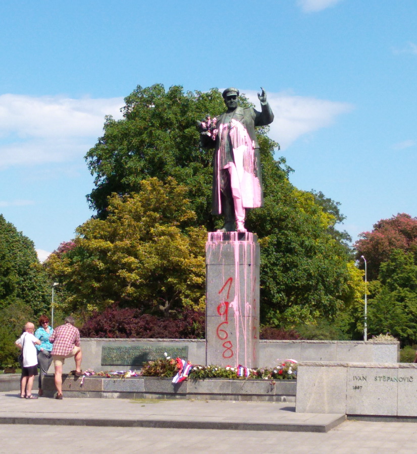 Красить советские памятники в Праге розовой краской — добрая традиция. В этом году облили памятник маршалу Коневу, отметив таким образом 8 мая, День освобождения. Для непонятливых вандалы написали по бокам поясняющие цифры: 1956, 1961 и 1968 годФото: из личного архива Добавляла истерики моя мама, которая неустанно приговаривала по скайпу из Москвы: «Вы всегда будете там людьми второго сорта. Всегда!»