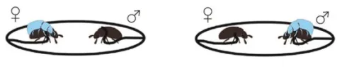 Если же межсамцовые отношения возникают по ошибке, оттого, что жук не может найти или распознать самку, картина будет иной. Самцововое сообщество должно усилить отбор на способность находить и идентифицировать партнершу, и, следовательно, контакты между самцами будут редкими. Зато в условиях, где самок много и отыскать их труда не составит, отбор на распознавание слаб — самцы будут чаще ошибаться и контактировать друг с другом, а не с самкой.