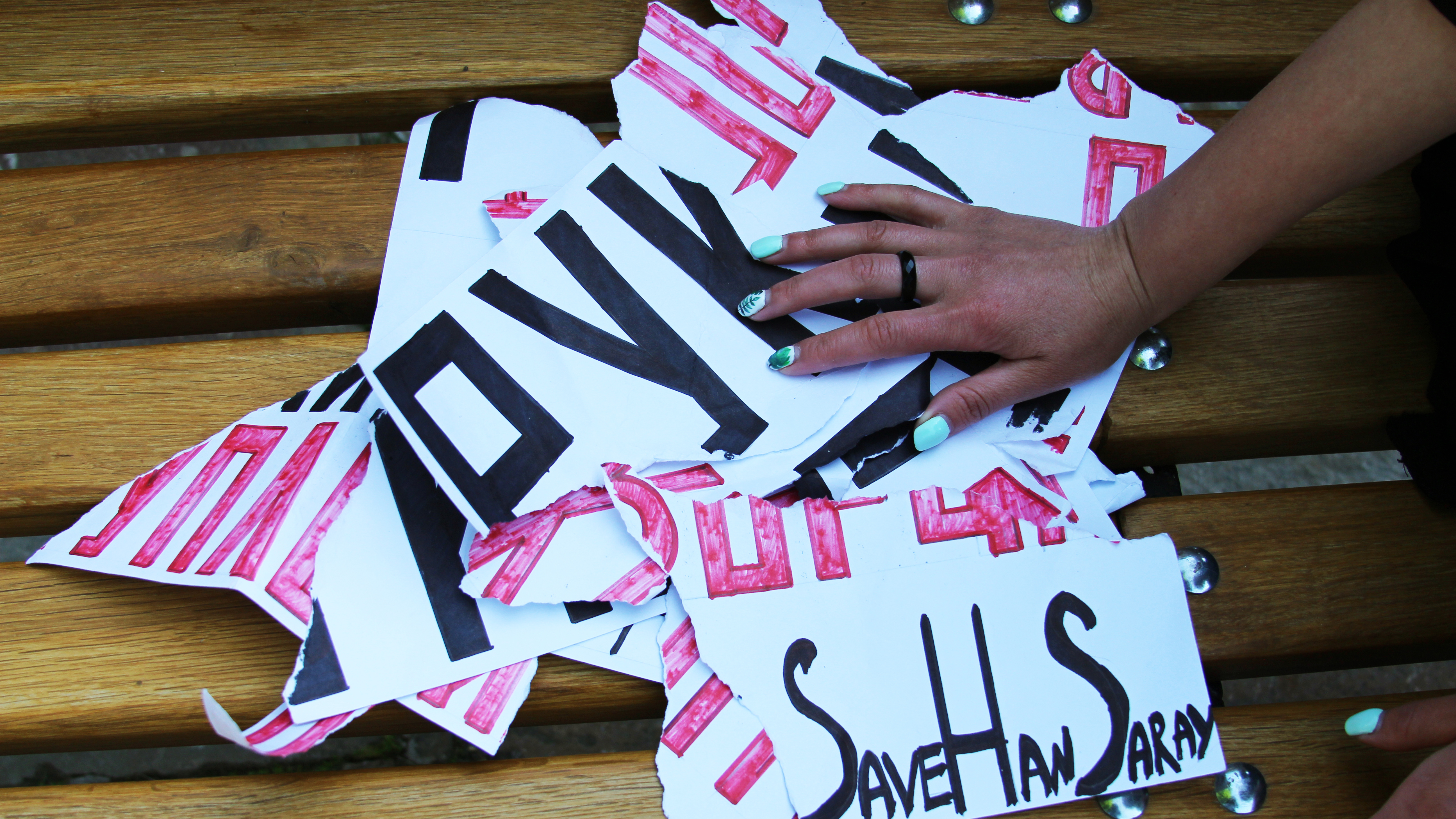 Эдем Аблаев вышел на одиночный пикет 18 апреля. С собой он предусмотрительно взял два плаката, написанных на листах формата А2. Если один порвут, есть второй в запасе. «То, что вышла Эльмаз – меня порадовало. Расстроило то, что мы не смогли ее защитить в конфликтной ситуации. Потому что не было тогда никакой поддержки». Вспоминает, точкой кипения для него стала новость, что Ханская мечеть на весь зимний период останется открытой.