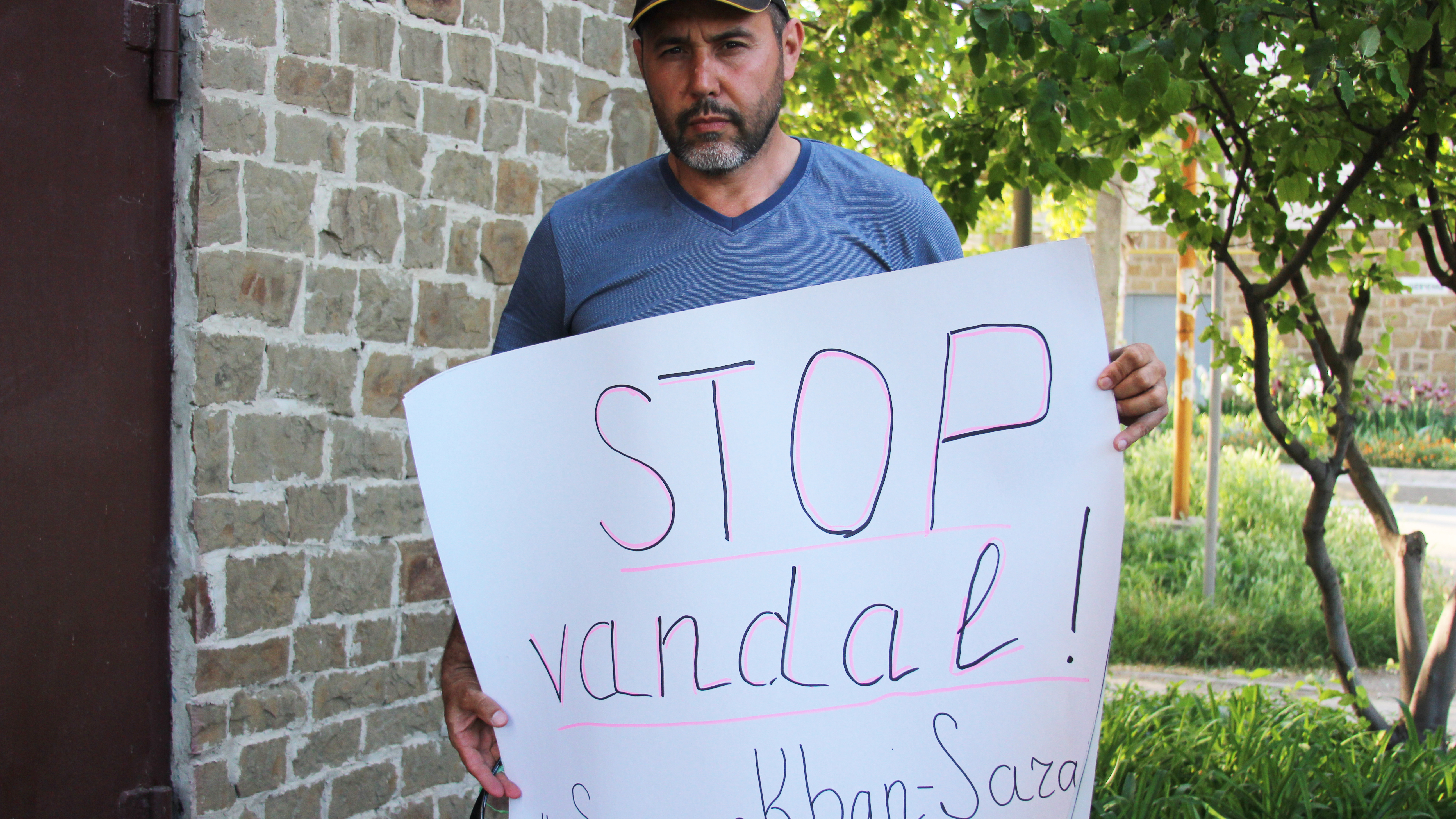 «Такое пренебрежение недопустимо. Тем более, то, что это произошло в Бахчисарае, – недопустимо вдвойне. Мы воспринимаем Бахчисарай как столицу, все, что происходит там, дорого любому крымскому татарину в любой точке мира. Когда сносили старые здания, в старом городе, это вызывало огромное возмущение. А тут мечеть. Я воспринимаю это, как личное оскорбление». С поднятыми вверх плакатами Эдем простоял около 30 минут, попеременно меняя их местами. На одном надпись: «STOP vandal! #SaveKhan-Saray», на втором – «Milletim! Tarihimiz yardimga muhtac! #sagla_Hansaray» («Мой народ! Наша история нуждается в помощи!»).