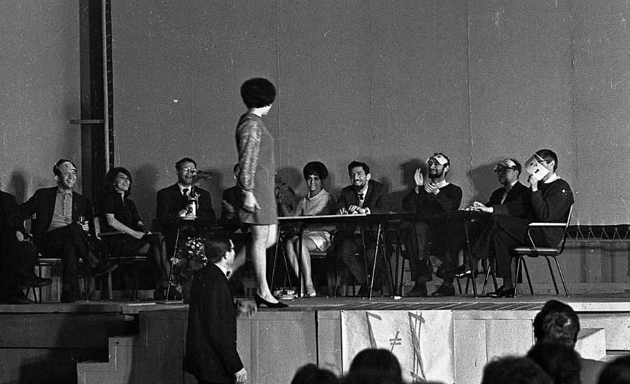 Конкурс красоты в клубе «Под интегралом»Фото: архив Анастасии Безносовой-Близнюк В 1965 году в клубе прошел первый конкурс красоты для девушек, выиграл который переодетый в дамское платье Герман Безносов. Причины для маскарада оказались вполне прозаическими.