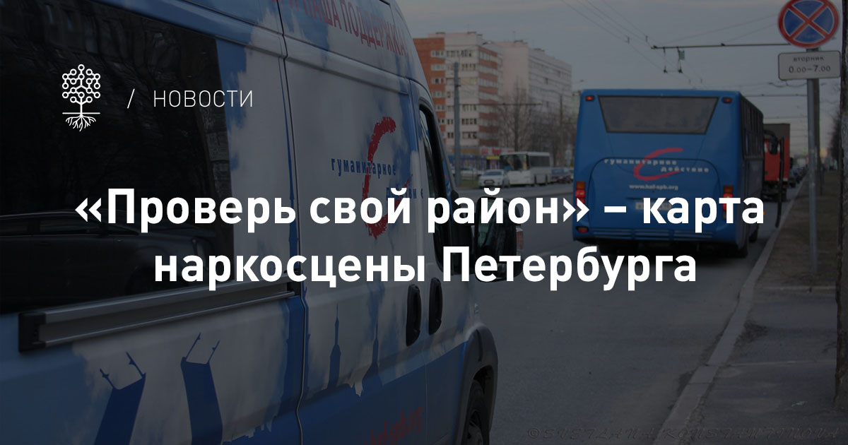 Благотворительный фонд «Гуманитарное действие» запустил проект «Проверь свой район» – вебсайт, на котором можно получить статистику наркопреступности и наркопотребления в Санкт-Петербурге, а также сведения о доступных видах помощи для наркозависимых и их близких. Информация представлена в виде интерактивной карты с разбивкой по всем районам города.
