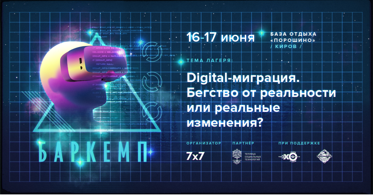 16 и 17 июня 2018 года в Кирове пройдет общегородская неформальная конференция баркемп. Это пикник за городом, где участники слушают лекции, участвуют в дискуссиях и мастер-классах. Тема баркемпа: «Digital-миграция. Бегство от реальности или реальные изменения?».