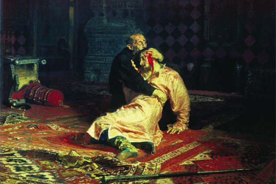 © Государственная Третьяковская галерея Илья Репин. Иван Грозный и сын его Иван 16 ноября 1581 года. 1885 Вечером в пятницу, 25 мая, в Государственной Третьяковской галерее (ГТГ) неизвестный совершил нападение на картину Ильи Репина «Иван Грозный и сын его Иван 16 ноября 1581 года» и нанес ей серьезные повреждения.