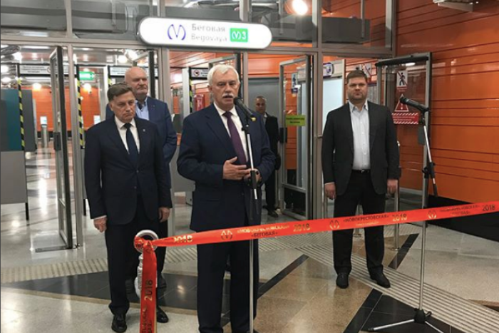 Георгий Полтавченко открыл станции «Новокрестовская» и «Беговая», которые продолжат зеленую линию метро.