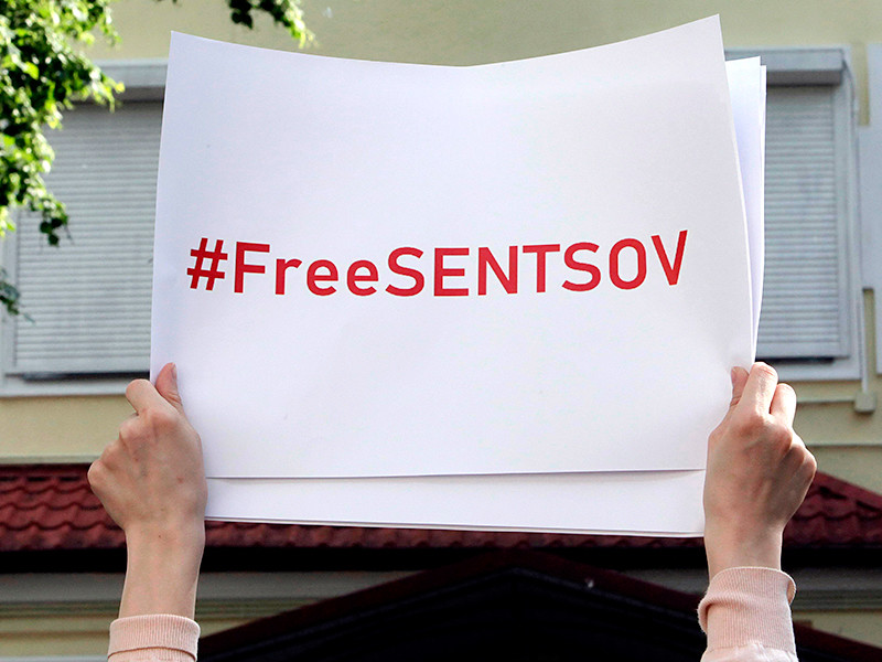 По прошествии 10 дней с начала голодовки Сенцова акции в поддержку режиссера прошли в Санкт-Петербурге и Москве. Активисты вывесили на набережных обоих городов плакаты с требованием освободить режиссера, а также с цитатой из его письма о начале голодовки.