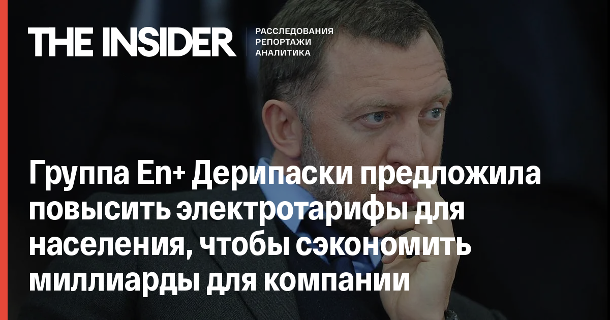 Группа En+ Дерипаски предложила повысить электротарифы для населения, чтобы сэкономить миллиарды для компании