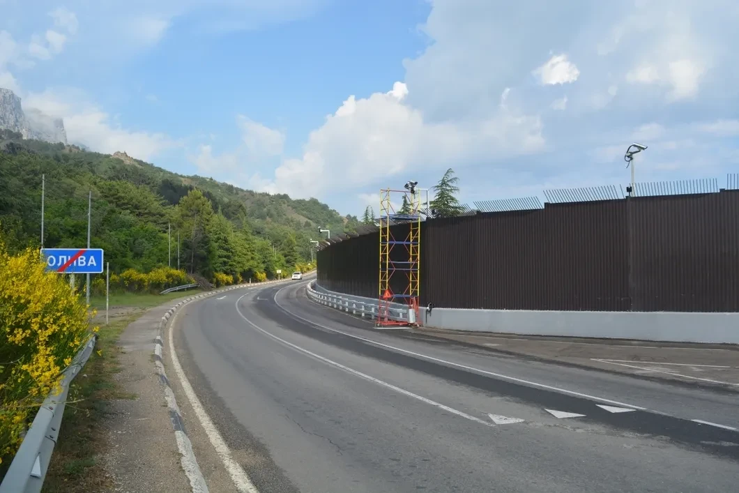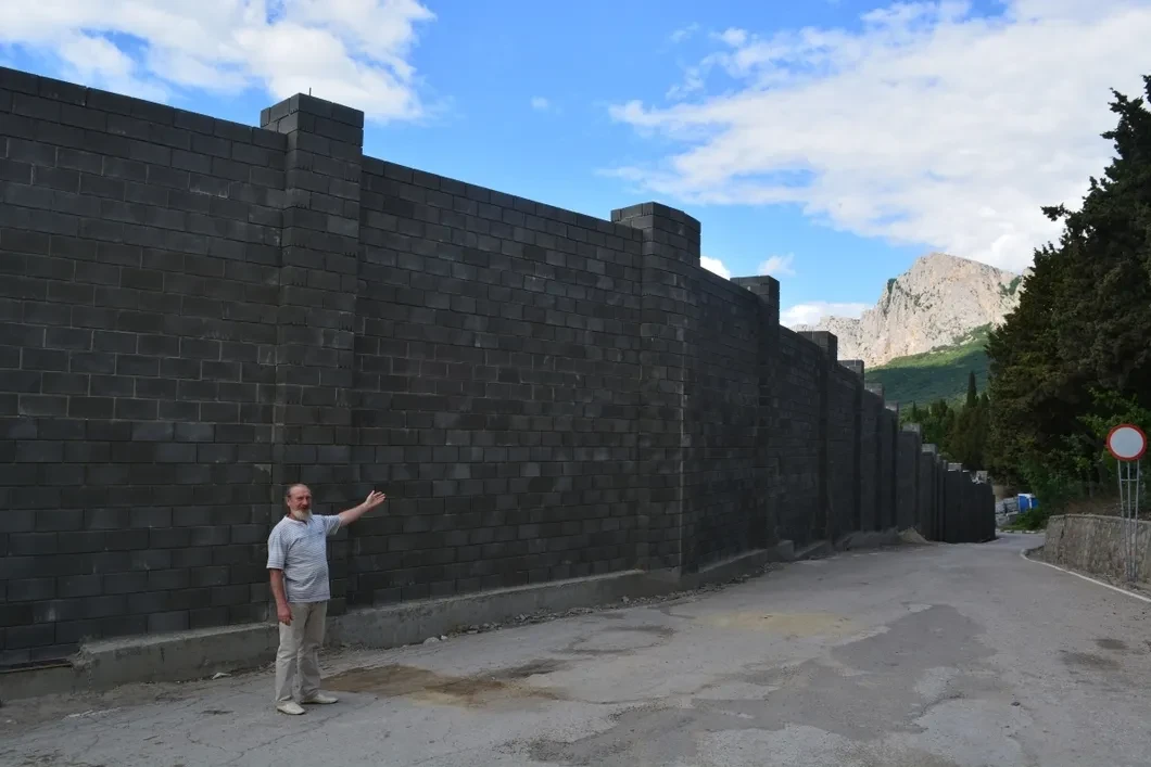 Тем, кто поедет из Ялты в Севастополь, на полпути встретится высокий, не менее 4 метров, коричневый металлический забор. Ехать вдоль него придется около двух минут. Он полностью закроет вид на море.