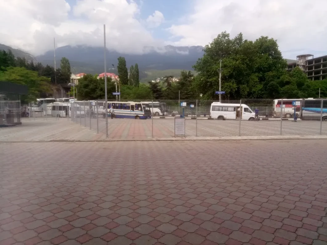 На автовокзале Ялты ограждения установлены в два ряда. Первый ряд — на подъезде к станции, второй — у самого перрона. Прибывающим предлагается тонкой струйкой проходить через серую калитку.