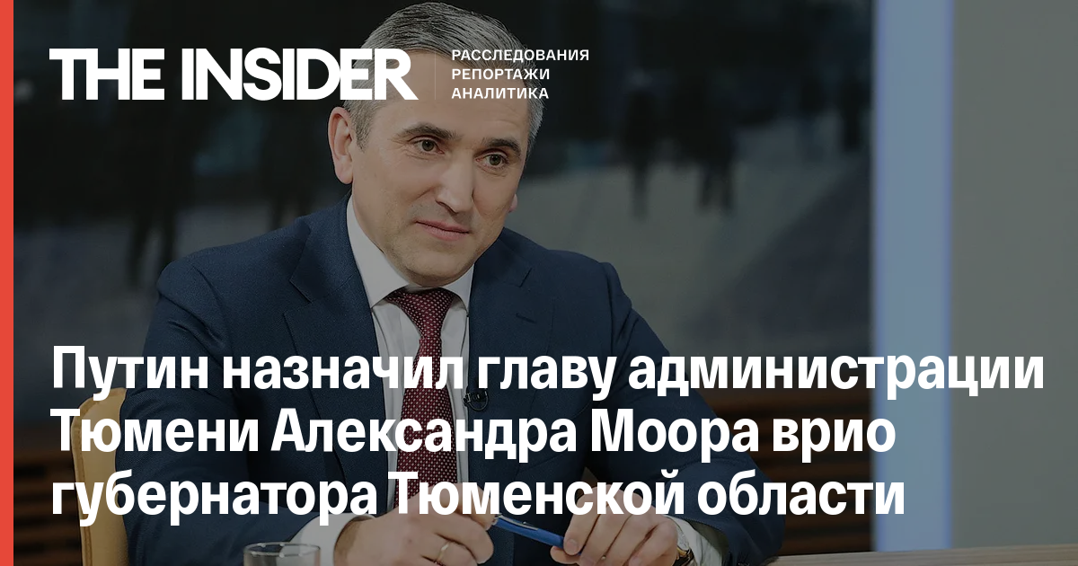 Владимир Путин назначил главу администрации Тюмени Александра Моора временно исполняющим обязанности губернатора Тюменской области. Указ опубликован на сайте Кремля.