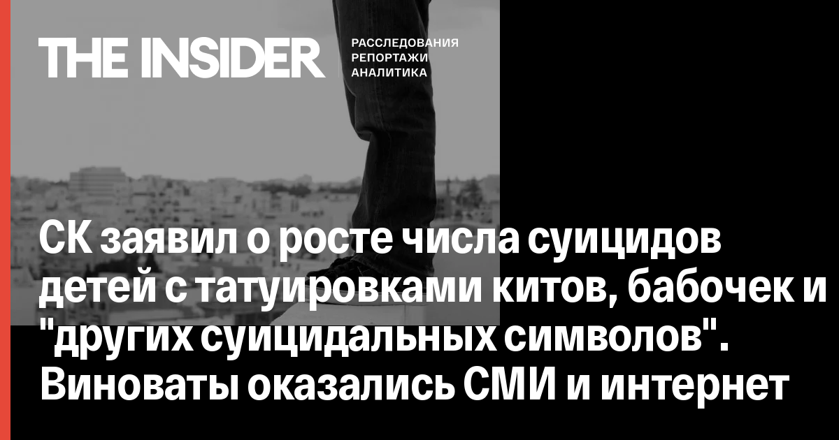 СК заявил о росте числа суицидов детей с татуировками китов, бабочек и "других суицидальных символов". Виноваты оказались СМИ и интернет
