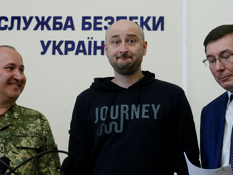 В минувший вторник СМИ со ссылкой на полицию сообщили, что Бабченко был застрелен киллером в своем доме в Киеве тремя выстрелами в спину. Однако в среду в Службе безопасности Украины заявили, что спецслужба провела операцию по предотвращению преступления, а "убийство" Бабченко было инсценировкой. Глава ведомства Василий Грицак рассказал, что журналист не пострадал, после чего сам Бабченко предстал перед публикой.