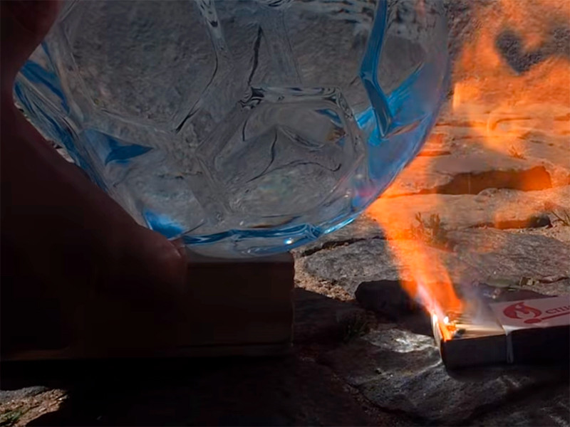 Меньше чем через минуту спички, на которые падали солнечные лучи, преломленные емкостью с водой, вспыхнули, и возник небольшой костер. Перед этим корреспонденты провели эксперимент с листом бумаги, эффект был аналогичный.