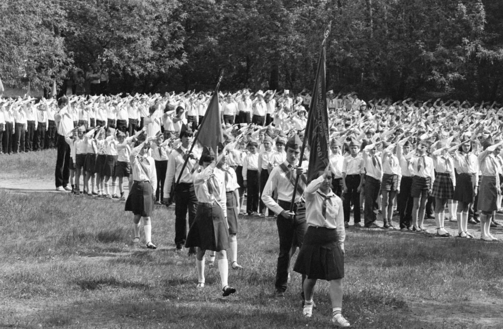 Пионерская линейка во время открытия лагеря в Московской областиФото: Соболев Валентин/Фотохроника ТАСС Потом мы с поклонником чистили сто кило картошки для ужина. И ладно бы чистили: срезать ножиком кожуру — это хоть интересно, но кожуру с картошек срезала машина, нам же, в наказание, было поручено самое унизительное — выковыривать глазки. Рабский пионерский труд. Часа два мы покорно и хмуро их выковыривали, потом стали бросаться шкурками, потом обливать друг друга из шланга, потом вошли в раж и… сгоряча шланг зарезали. Не осознавая масштаба преступления. Оказалось, этот шланг был главным на кухне, из него мыли эту самую чертову картошищу, чтобы потом засунуть в кастрюлищи и сварить на гарнир.