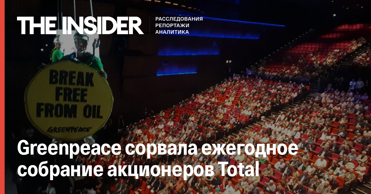 Ежегодное собрание акционеров французской нефтегазовой компании Total временно отложили из-за того, что на него проникли активисты Greenpeace. Об этом сообщает Reuters.