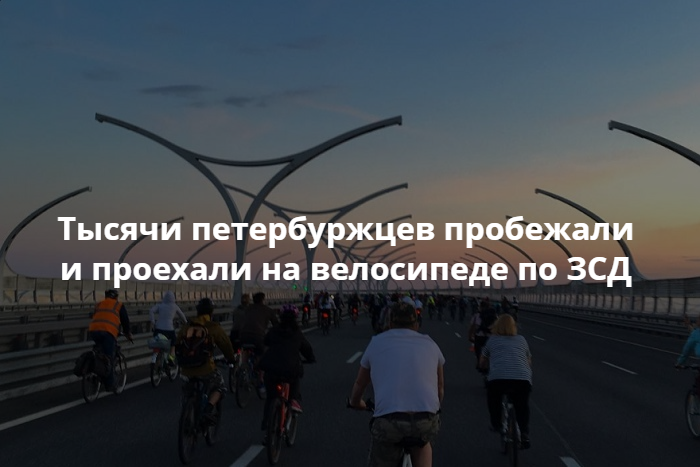 В Петербурге 2 июня впервые прошел фестиваль «Засвети скоростной диаметр». В забеге по ЗСД приняли участие около тысячи бегунов и 4 тысячи велосипедистов. Дистанция составила 10 и 20 километров.