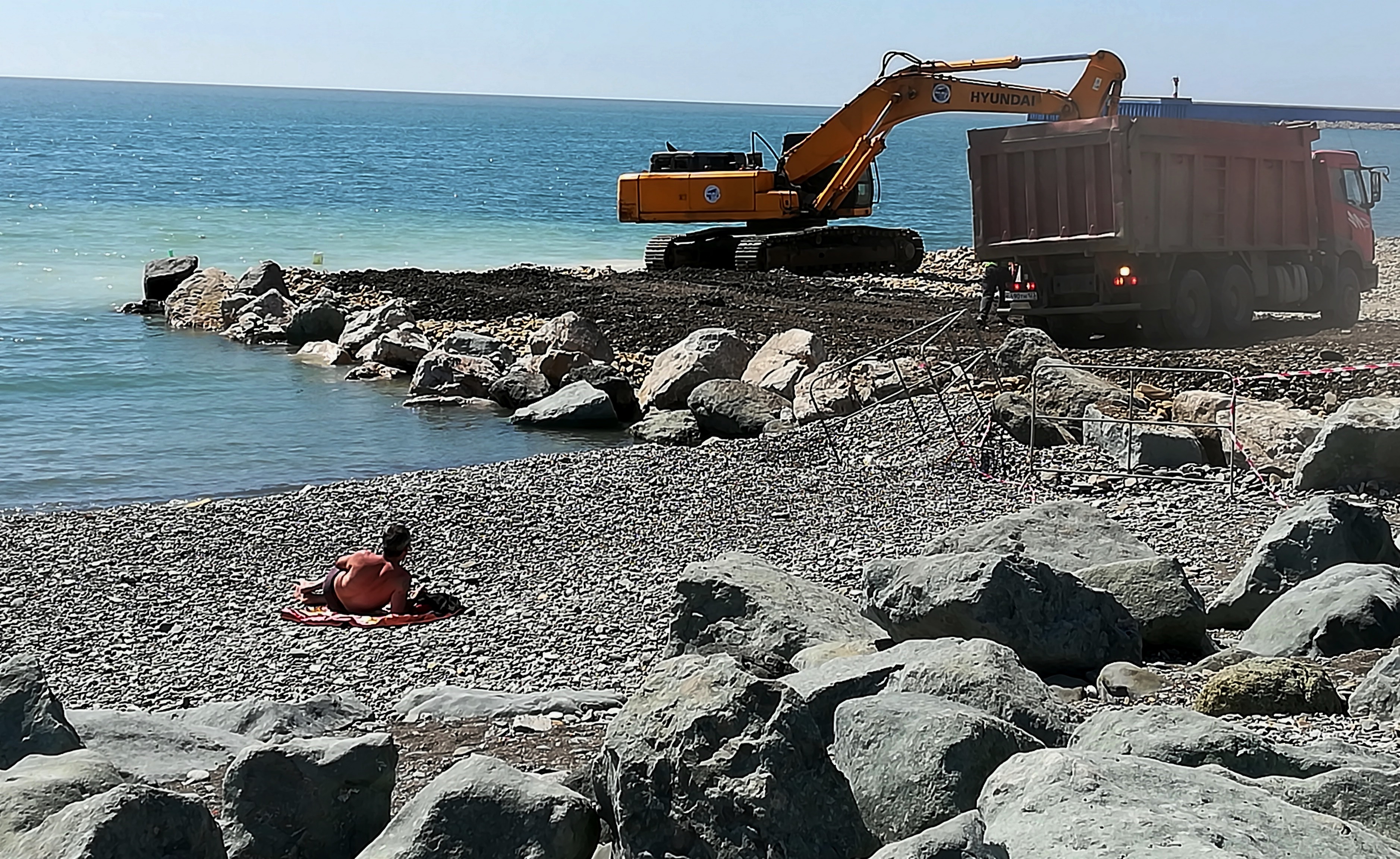 Чтобы берег перестал уходить под воду, нужно выполнять ту же работу, что и река. Мзымта ежегодно приносила на берег тонны гальки и песка, до 30 тысяч кубометров в год. Объем одного КамАЗа около 11,5 кубометров. То есть, чтобы подменить реку, требуется 2600 КамАЗов: каждый день без выходных 6–7 грузовых машин должны приезжать на берег, высыпать гальку и песок. Рабочая техника круглый год сновала бы по пляжу среди отдыхающих. Представьте себе картину: туристы фотографируются, плавают в море, загорают, лежа на полотенцах, дети играют на мелководье, а рядом работает техника. Так и происходило в мае этого года, когда пляж готовили к началу туристического сезона.