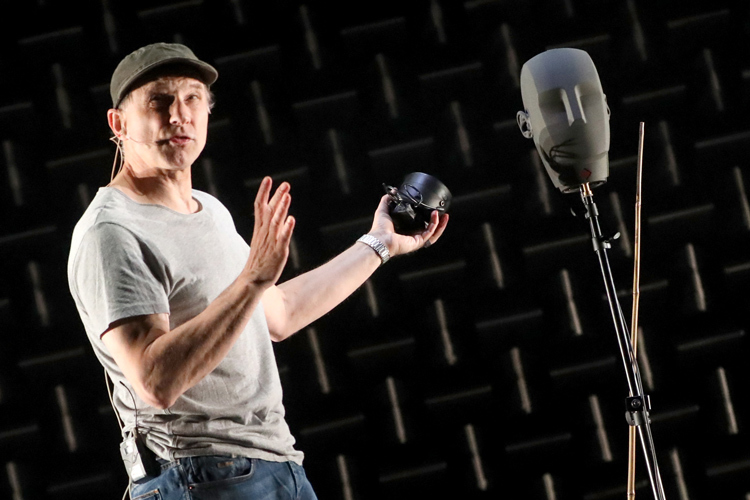 Звуком заведуют Гарет Фрай и Пит Малкин; «Встреча» без их фантастического саунд-дизайна — все равно что проекты Роберта Уилсона без Эй Джей Вайссбарда и его волшебного света. Например, по ходу спектакля меняется голос рассказчика: МакБерни разговаривает тенором, а Лорен МакИнтайр — басом. Хай-тек соседствует с подчеркнуто олдскульными трюками: пачка чипсов изображает треск огня, бутылка минералки — плеск реки.